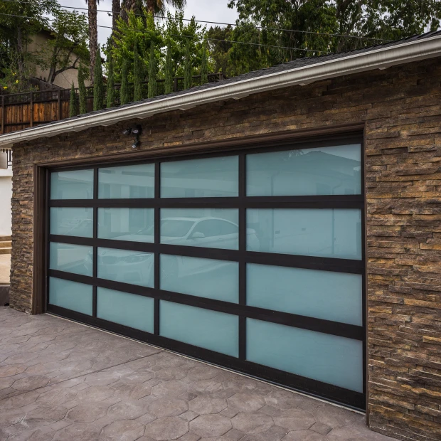 Modern Luxury Villa Garage Doors with 5mm Clear Non-Insulated Glass Aluminum Alloy Waterproof Finished Surface